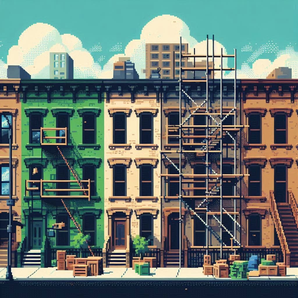 Our second project was a dilapidated beast — a six-unit tenement from the 1860s that hadn’t seen proper care since the Great Depression. Three units sat vacant, a testament to its neglect. We dug in, living in one unit while renovating the others. Four years later, we expanded further, adding a floor and tackling two more units. The final two rent-regulated apartments, however, remained out of reach for another decade. But tenacity has its rewards. After nearly 20 years, the entire building was finally brought up to its full potential.